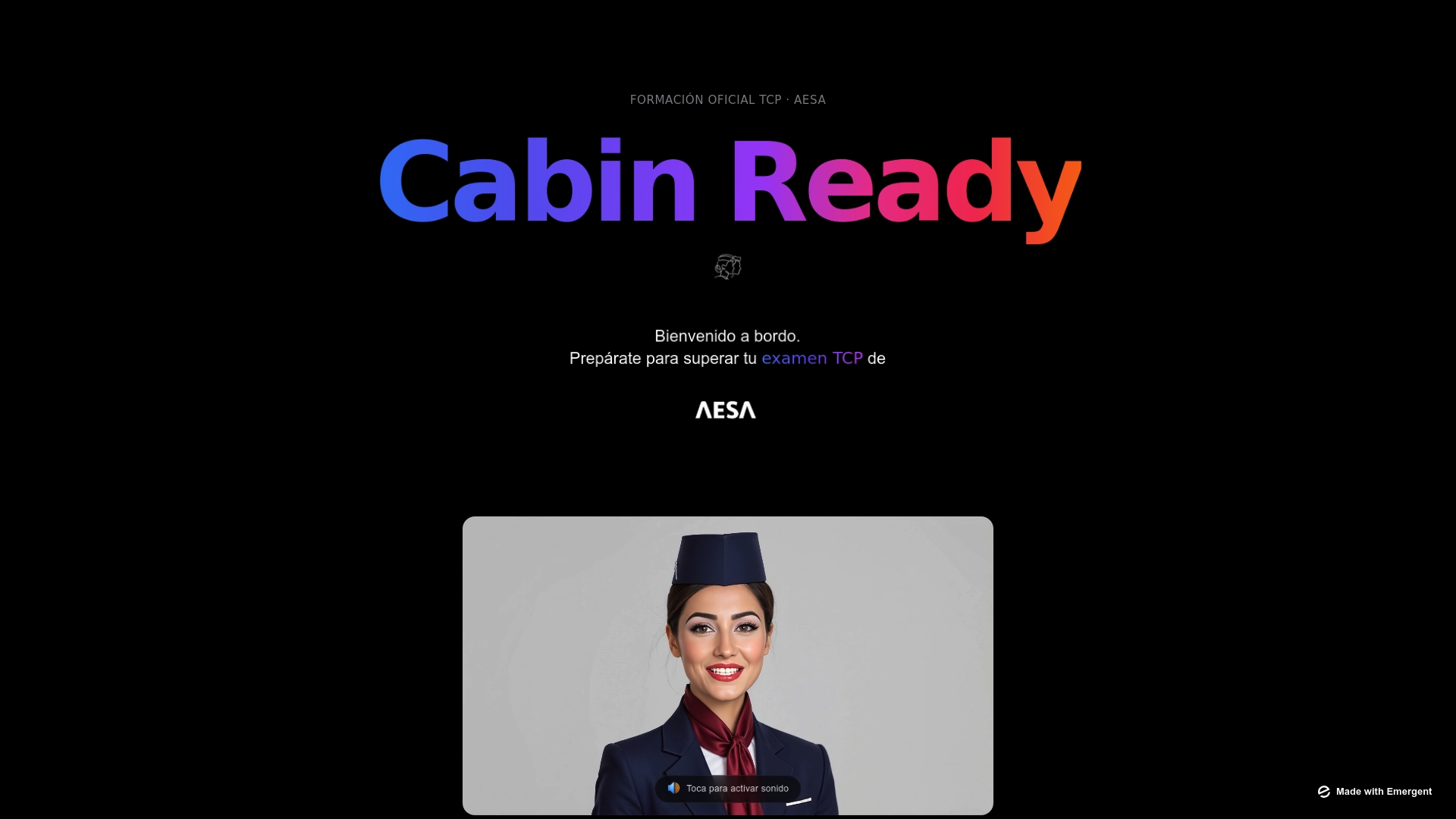 Cabin Ready se presenta como la plataforma online de formación para Tripulantes de Cabina de Pasajeros (TCP) en España. Ofrece un banco de preguntas actualizado, simulacros reales de examen y una metodología estratégica orientada a aprobar.